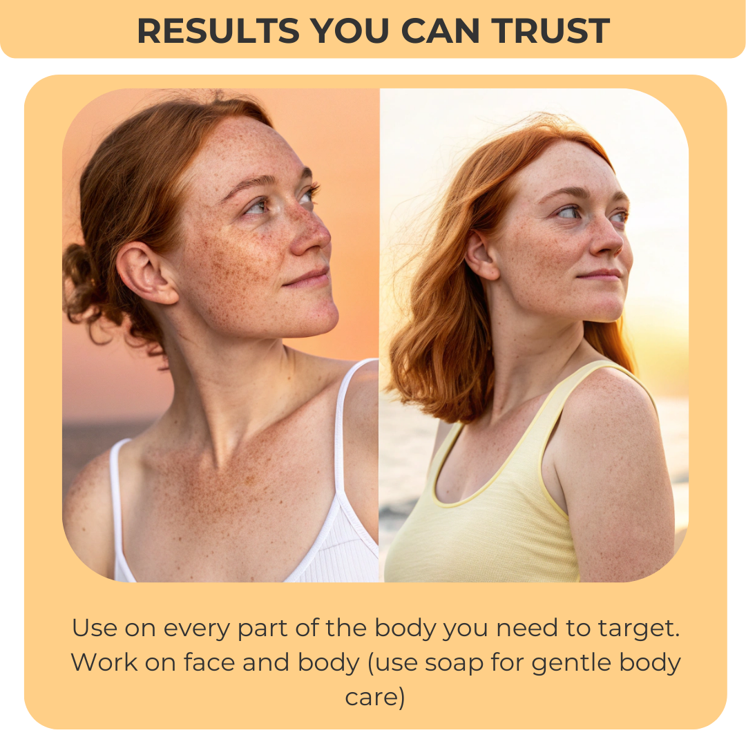 We use gentle brightening actives that work with your skin barrier, not against it — helping fade sun spots gradually while keeping skin calm and balanced.